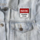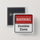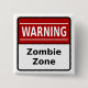 Warning - Zombie Zone - square button pin with red, white and black warning sign style design.