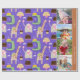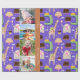 Add a custom touch to your child's birthday party with this adorable personalised wrapping paper. Gift wrap has a pattern of zoo animals like giraffes, alligators, and elephants, along with birthday cakes and balloons. The background is colourful and bright purple. Add two custom messages, such as happy birthday and your little one's name and age, and four of your favourite photos.