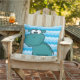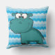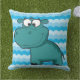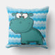 Outdoor pillow with a pretty shades of blue background and a cute cartoon blue hippo!