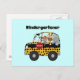Zoo animals including a zebra, monkey, giraffe, and hippo ride the yellow school bus to kindergarten on our Zoo Animals Kindergarten T-shirts, mugs, cards, stickers, tote bags, sweatshirts, and other kindergarten gear.