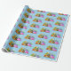 Wrapping paper shown with a cute zoo friends print on a light blue background colour.