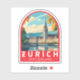 Zurich retro vector travel design. The picturesque lanes of the central Altstadt (Old Town), on either side of the Limmat River, reflect its pre-mediaeval history.