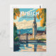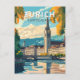 Zurich retro vector travel design. The picturesque lanes of the central Altstadt (Old Town), on either side of the Limmat River, reflect its pre-mediaeval history.